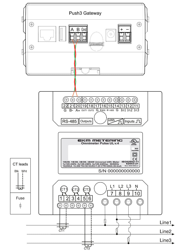 Single-Phase 2-Wire (Hot and Neutral) + Push3 + 485Bees