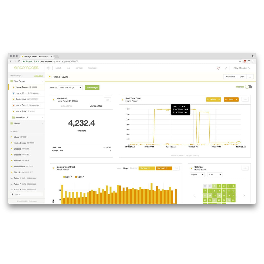 Encompass.io is our free online meter management platform for monitoring data, managing meters, generating bills, and more. It is designed specifically for people who are remotely reading their meters via the Push3 system. This platform can be used to visualize data on customizable dashboards, visualize cost, monitor trends, group meters, and a lot more. Each meter and meter group in Encompass can also be set up to email you, and/or your tenant, PDF bills. Here is a sample PDF electric bill: